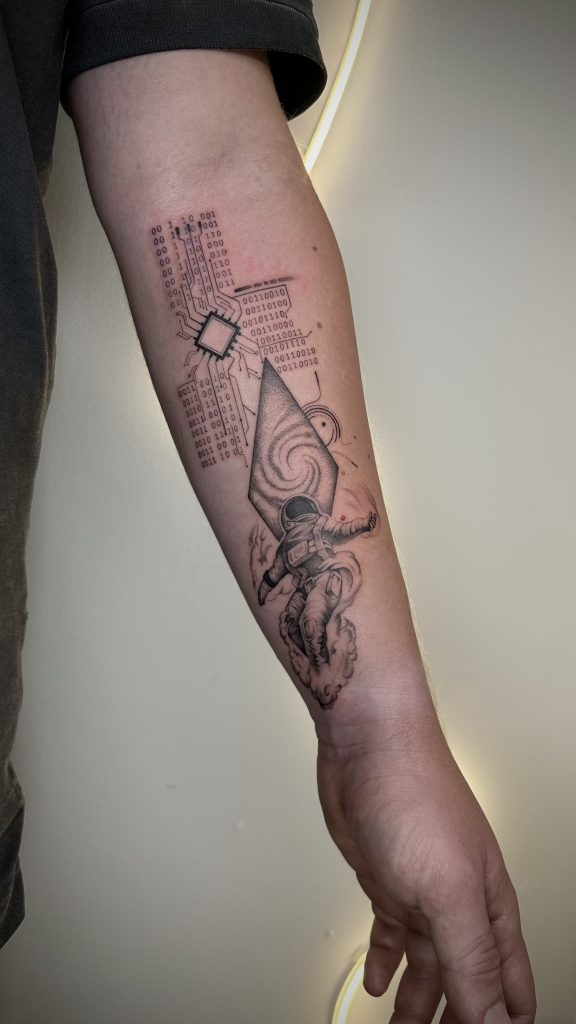 Mein Name ist Jannis Förster, geboren im Februar 1996. Seit Januar 2023 lebe ich meine Leidenschaft als Tattoo-Artist aus. Von Anfang an habe ich mich auf die Kunststile Fineline, Microrealismus, Dotwork und Ornamente spezialisiert, die meine Arbeiten prägen.